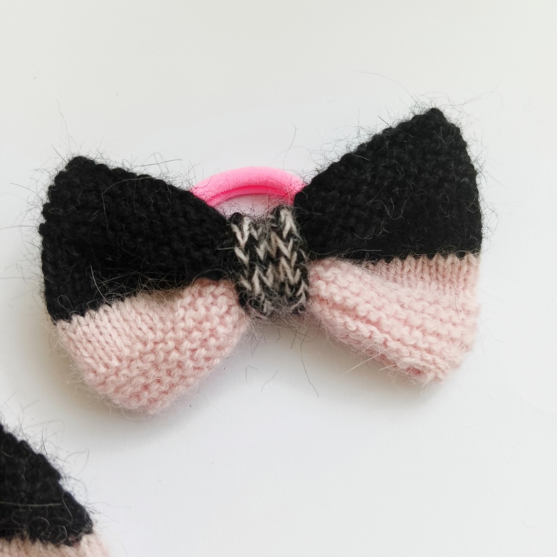 Яскравий в'язаний бантик у поєднанні рожевого та чорного кольорів. Бантик приємний на дотик, не плутає волосся й надійно тримається завдяки гумці. Підходить для повсякденних образів, шкільних зачісок, фотосесій чи свят.