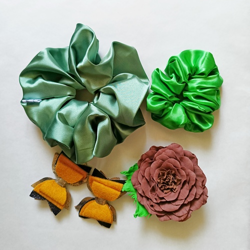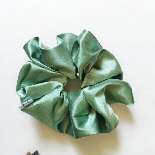 Два атласні скранчі у відтінках зелені - ніжні та приємні на дотик, додають свіжості образу;