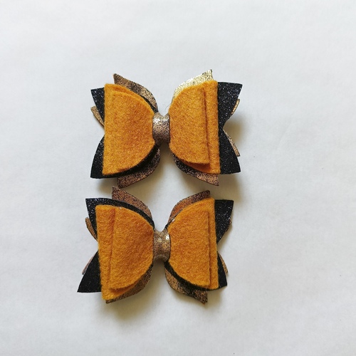 Фетрові банти-заколки у теплих осінніх тонах із золотистим блиском - стильний та практичний акцент для волосся.