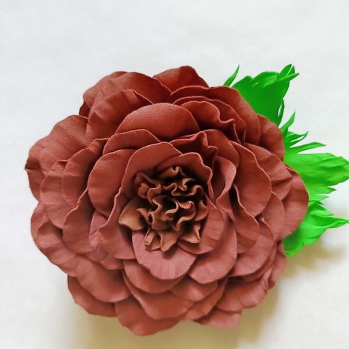 Заколка квітка з фоамірану глибокого коричневого кольору - акцент для святкової зачіски;