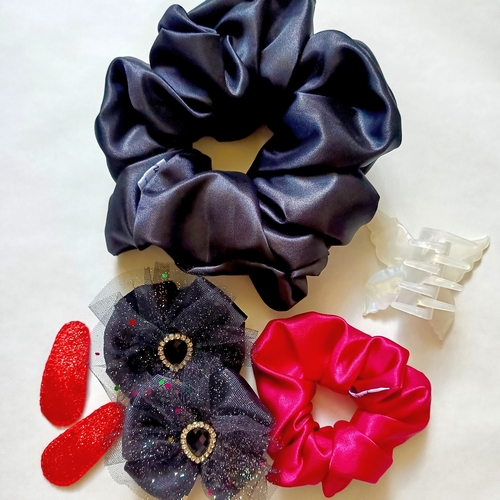 Елегантний набір аксесуарів для волосся у розкішному поєднанні чорного та червоного кольорів.