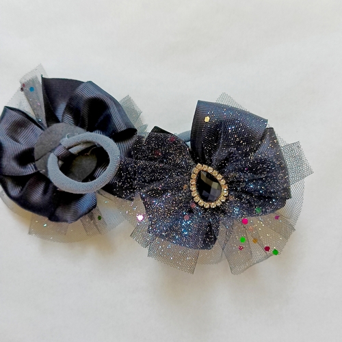 Пара блискучих резинок чорного кольору з камінціми