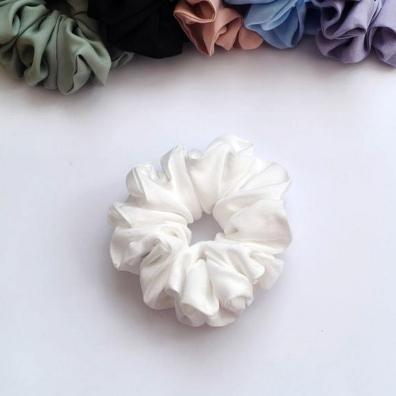 Молочний скранч для волосся — елегантний аксесуар у світлому відтінку. Такий колір виглядає мінімалістично та дуже стильно.