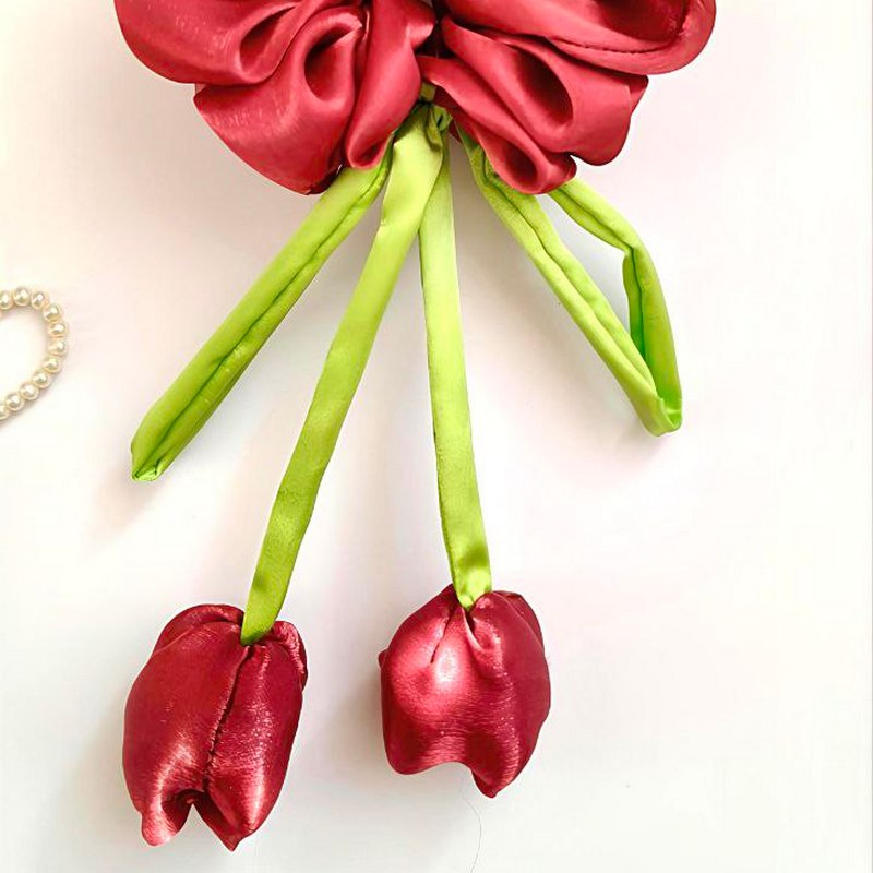 Червоний скранч з тюльпанами