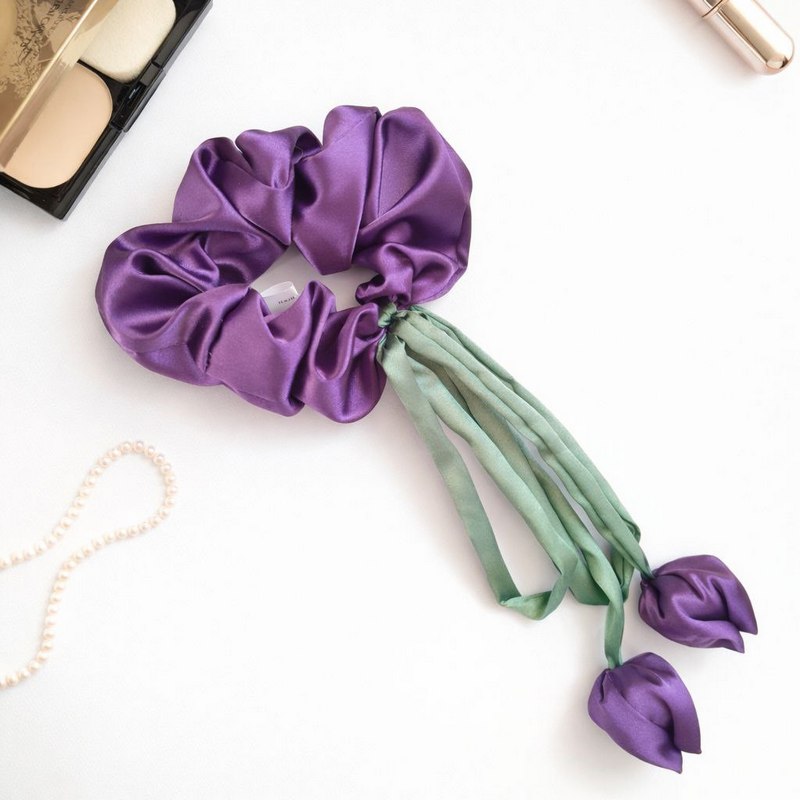 Фіолетовий скранч з тюльпанами