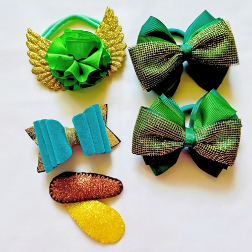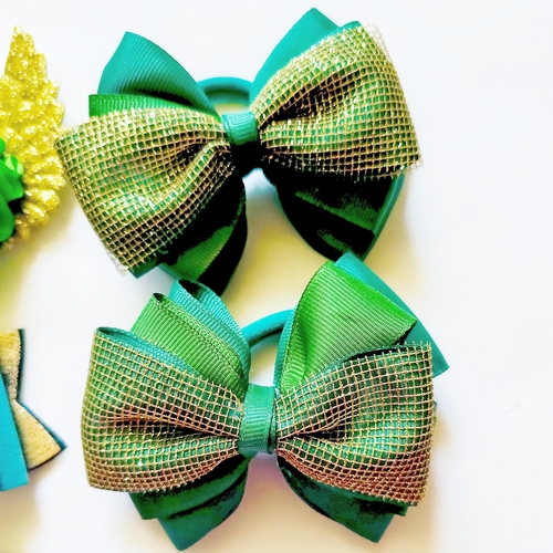 Дві резинки банти зеленого кольору з золотом