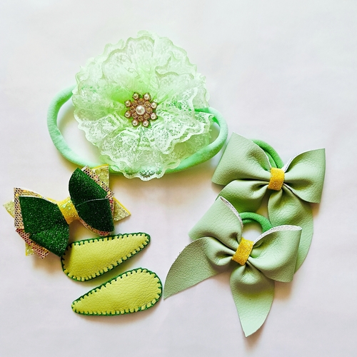 Елегантний набір scrunchie у відтінках смарагдового, м’ятного й золотистого. “Tiana Set” — це втілення гармонії, ніжності та природної краси. Ідеально пасує до вечірніх образів і повсякденного стилю з ноткою вишуканості.